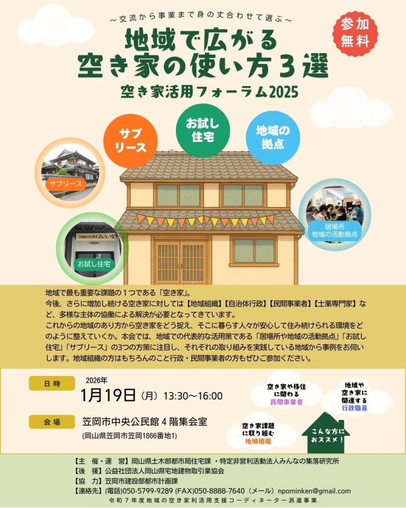 【参加者募集!】1月19日(月)「地域で広がる空き家の使い方3選」空き家活用フォーラムを開催いたします!